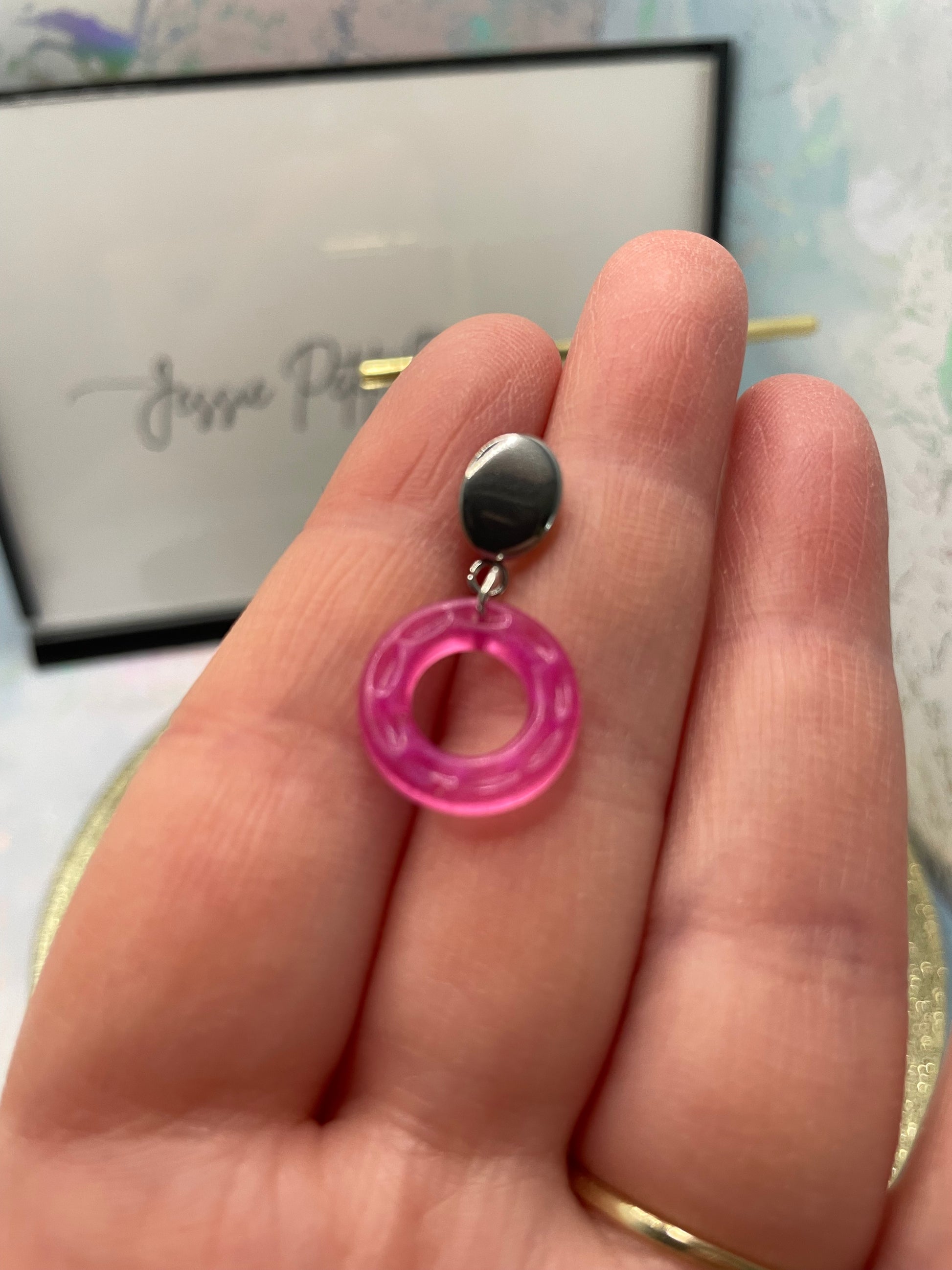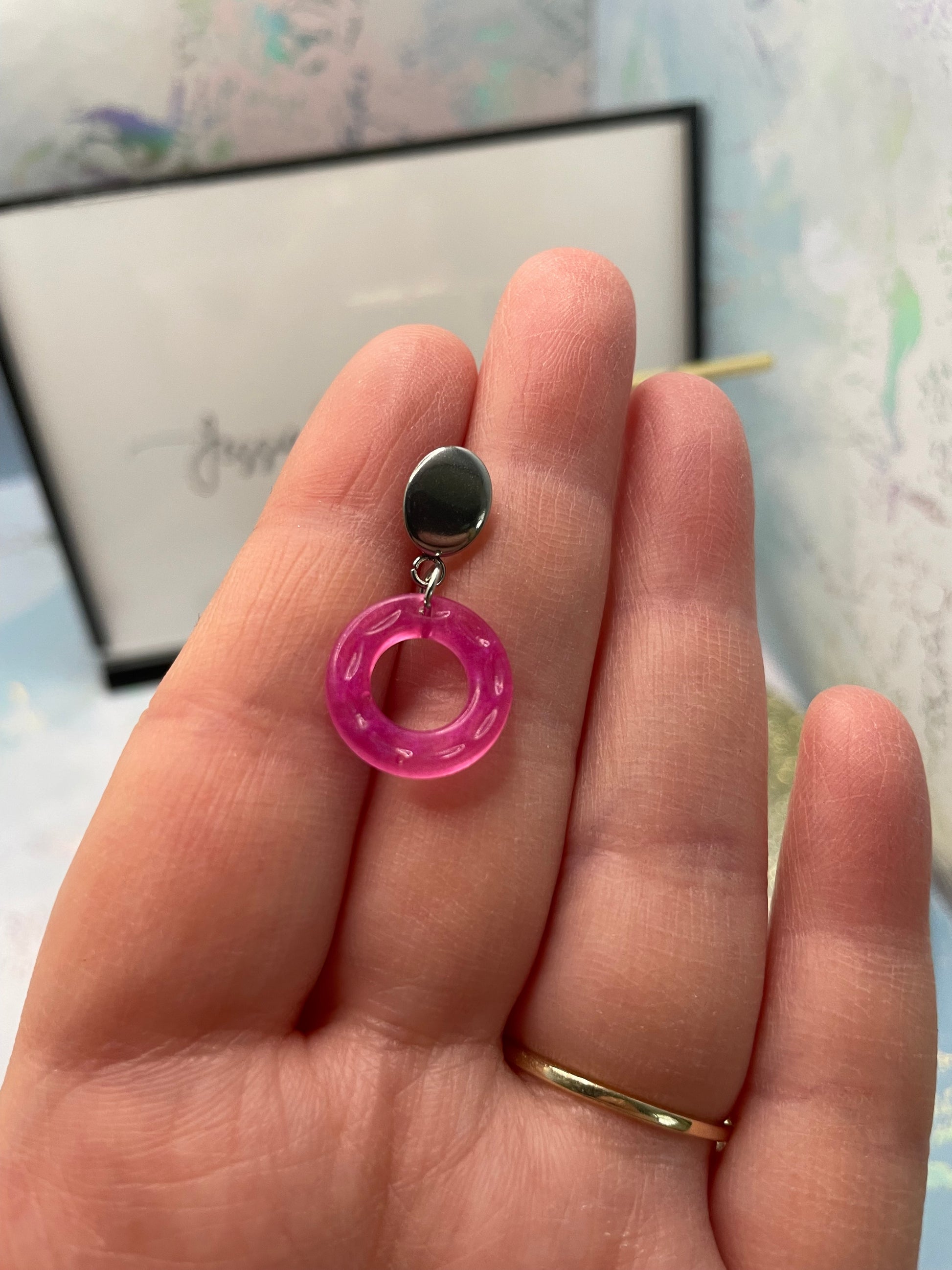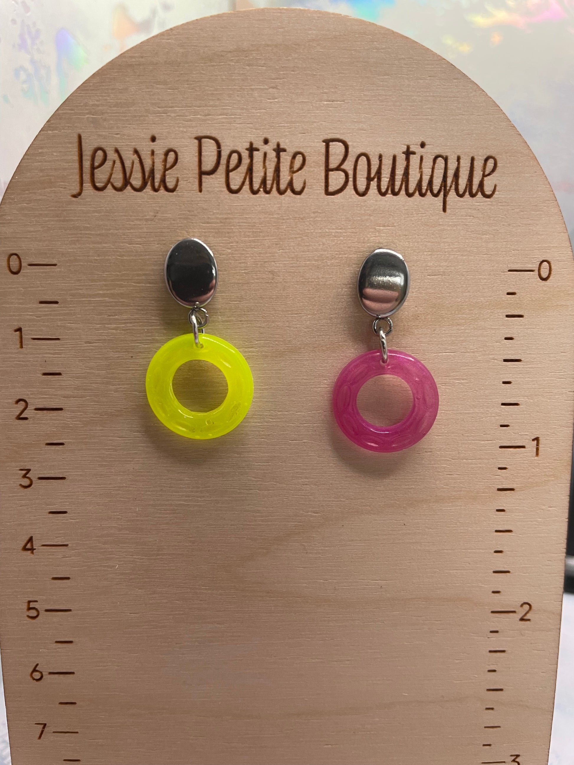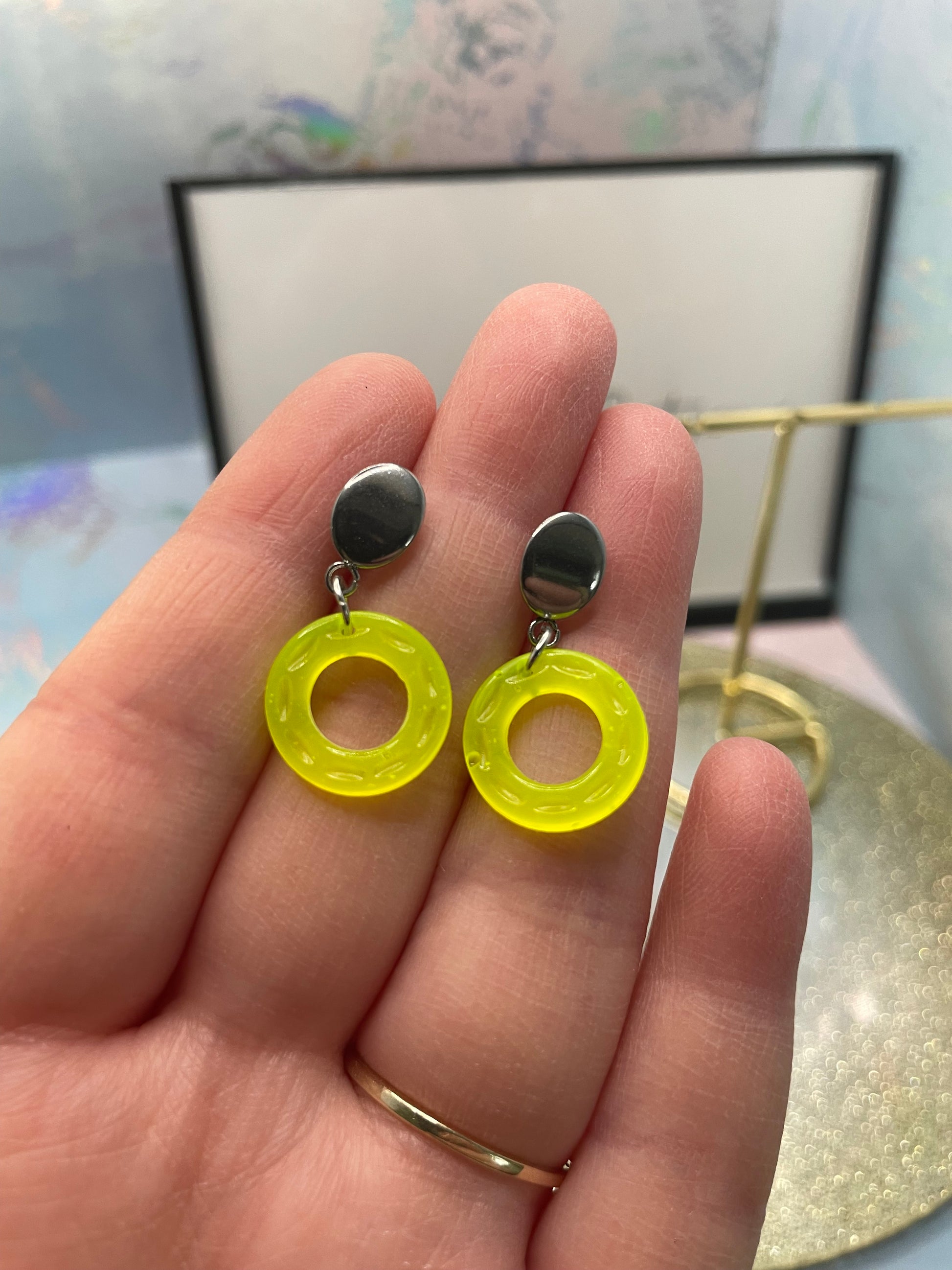 Small Neon Donut Earrings + Silver Stud – STAINLESS STEEL