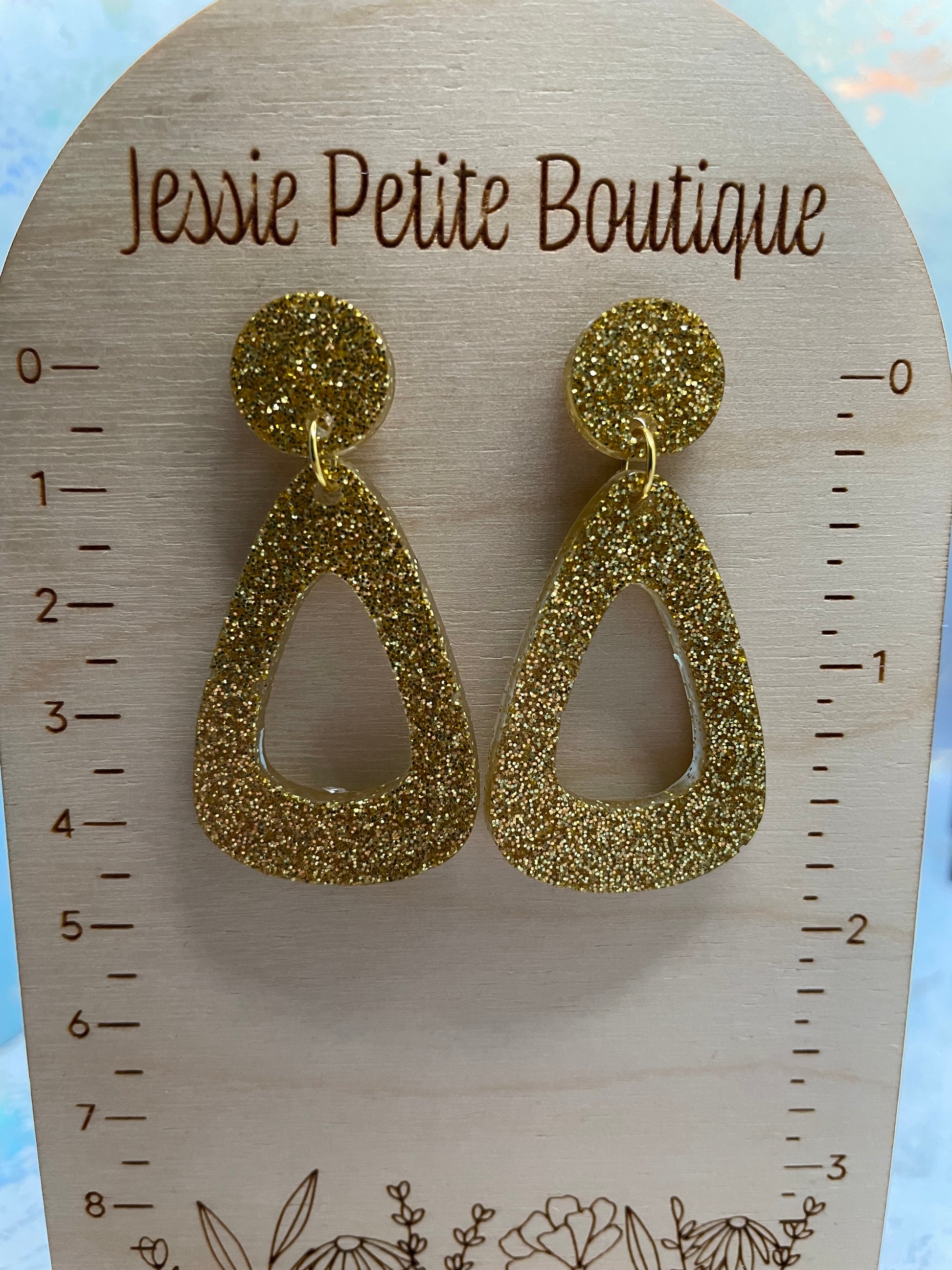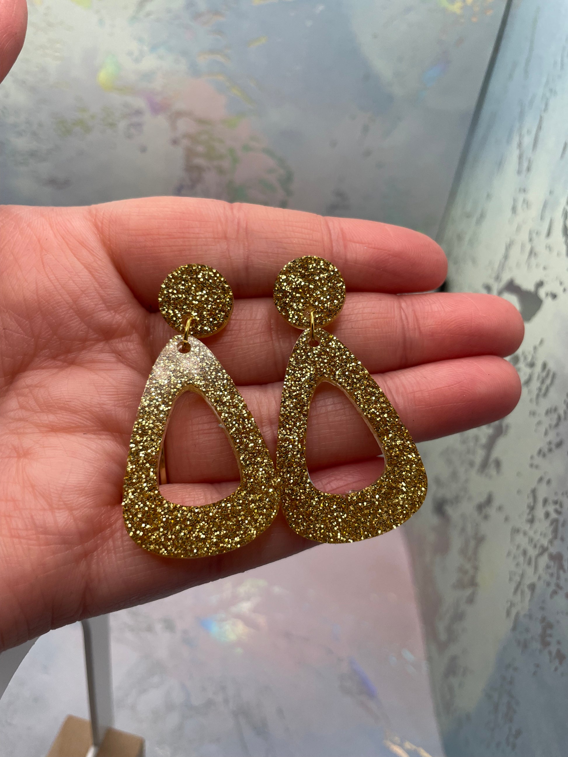 Add a touch of glamour to your look with these dazzling sparkly gold teardrop earrings. Designed in an elegant teardrop shape, these earrings are crafted from resin and infused with shimmering glitter, creating a radiant, eye-catching effect. Lightweight and comfortable to wear, they feature nickel-free butterfly closures, making them perfect for sensitive ears.
