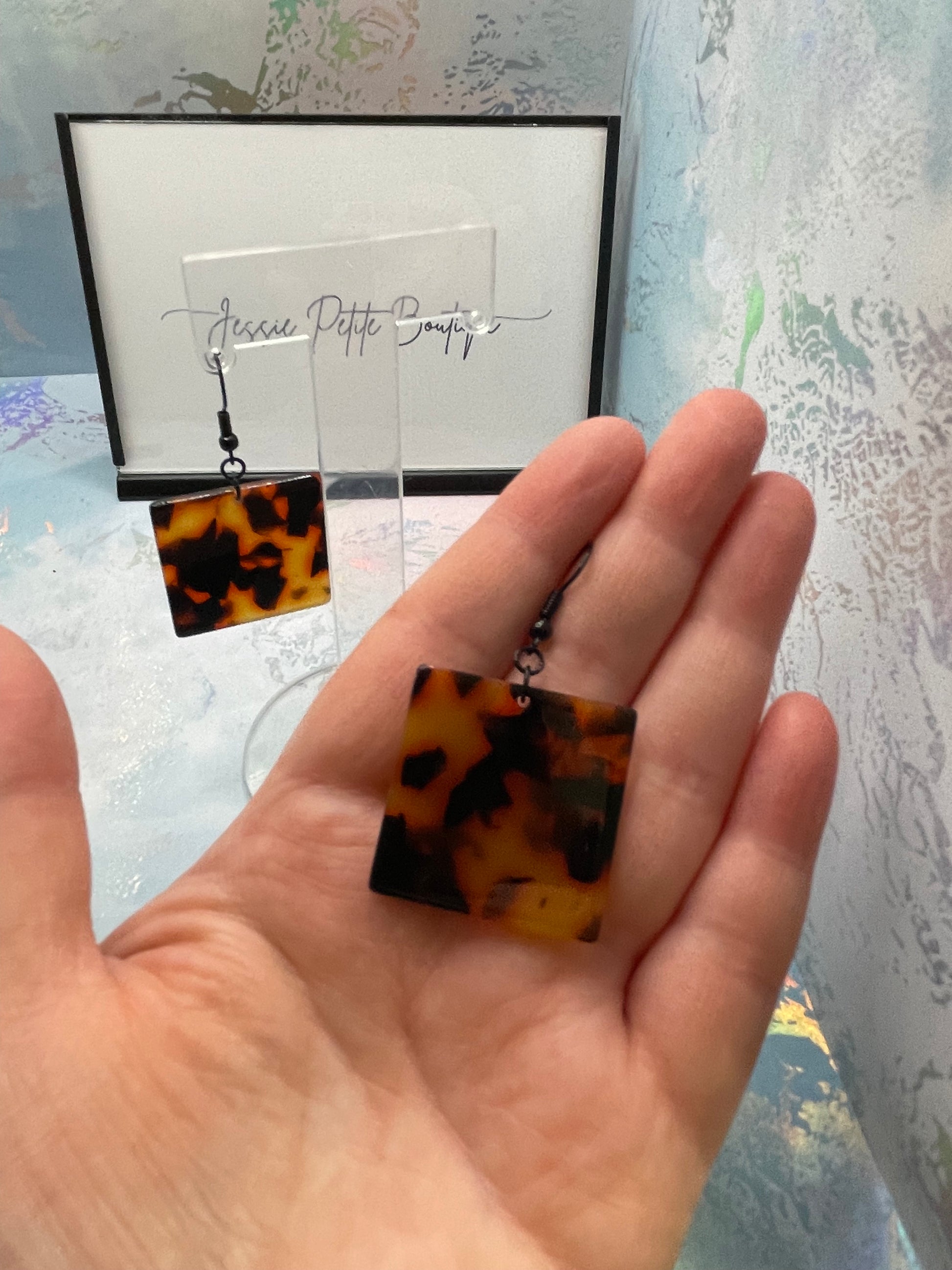 These timeless square tortoise earrings are perfect for adding a touch of elegance to your everyday or formal looks. ✨🖤