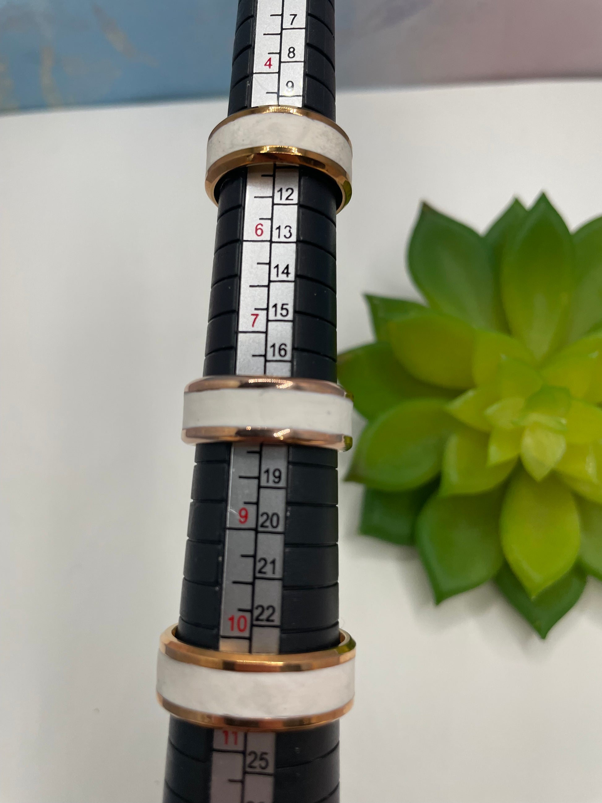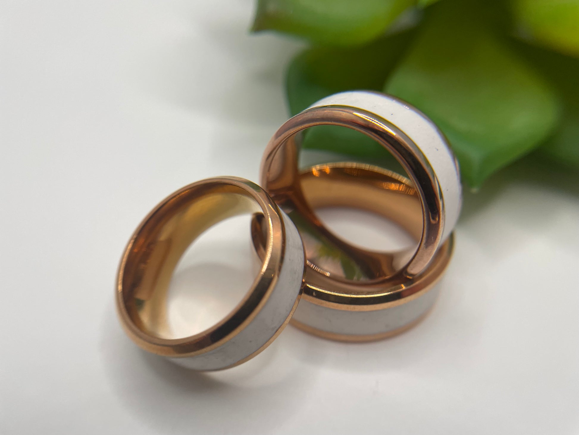 Stainless Steel Ring with White Polymer Clay Inlay – Rose Gold Finish