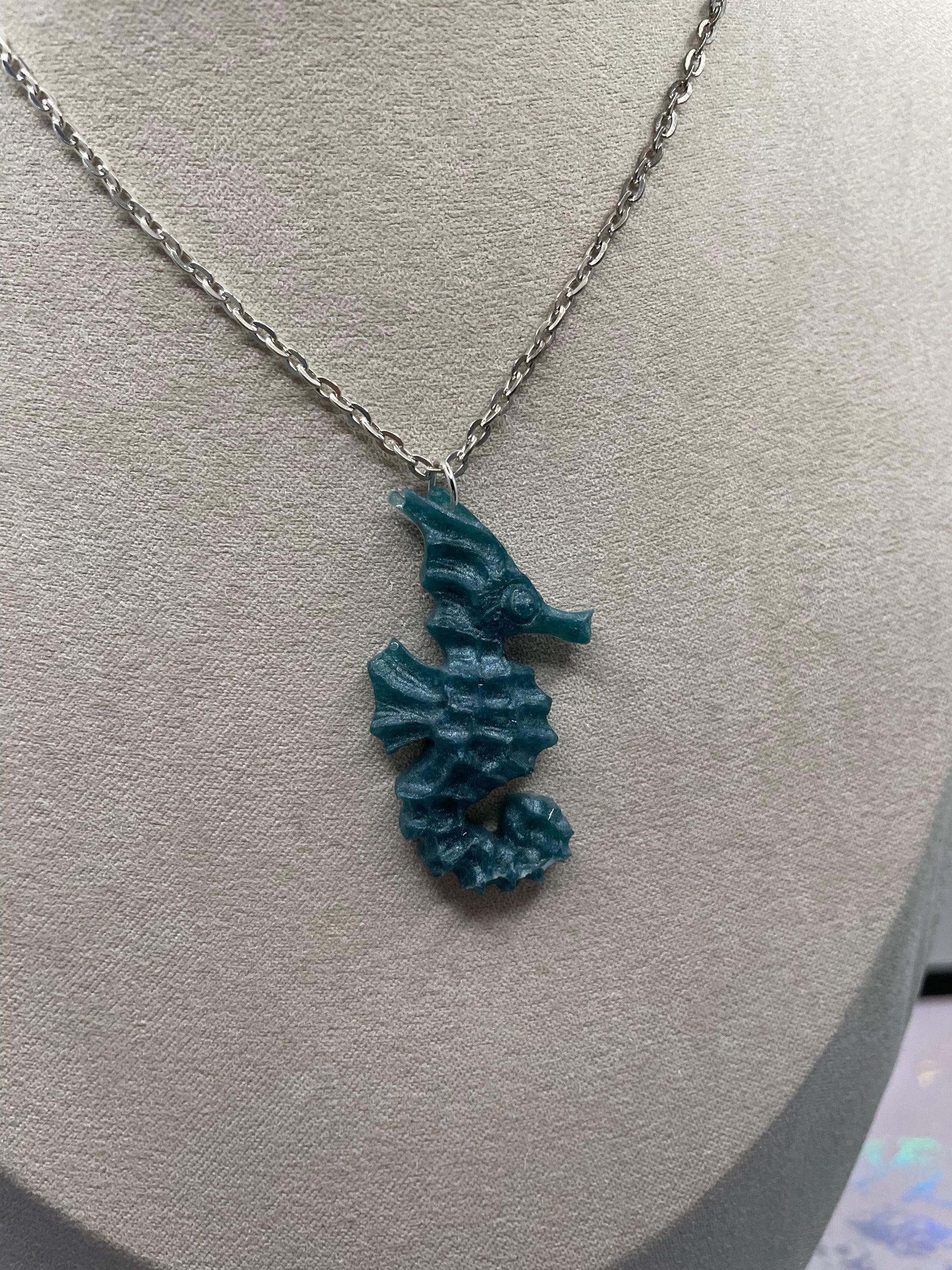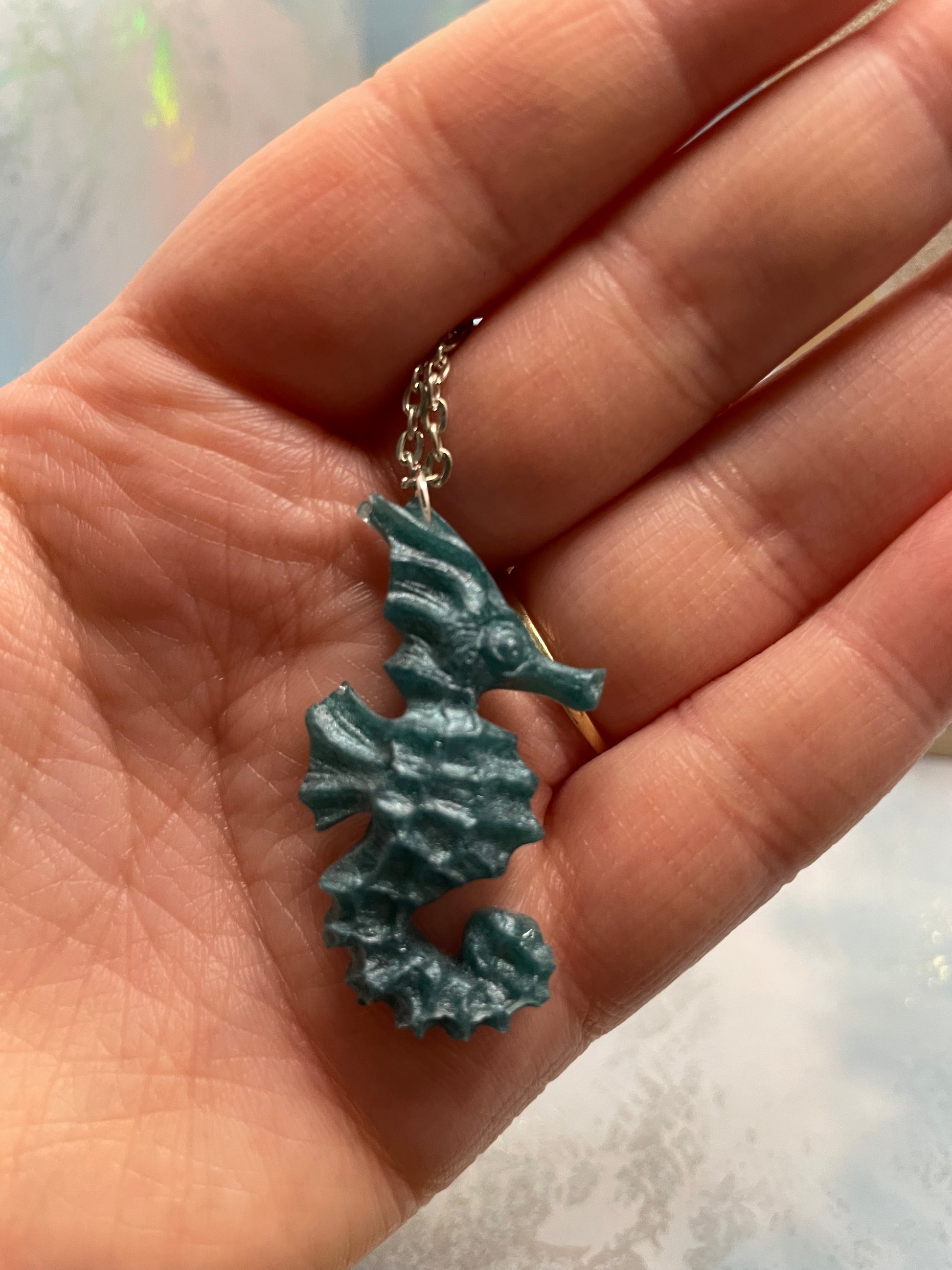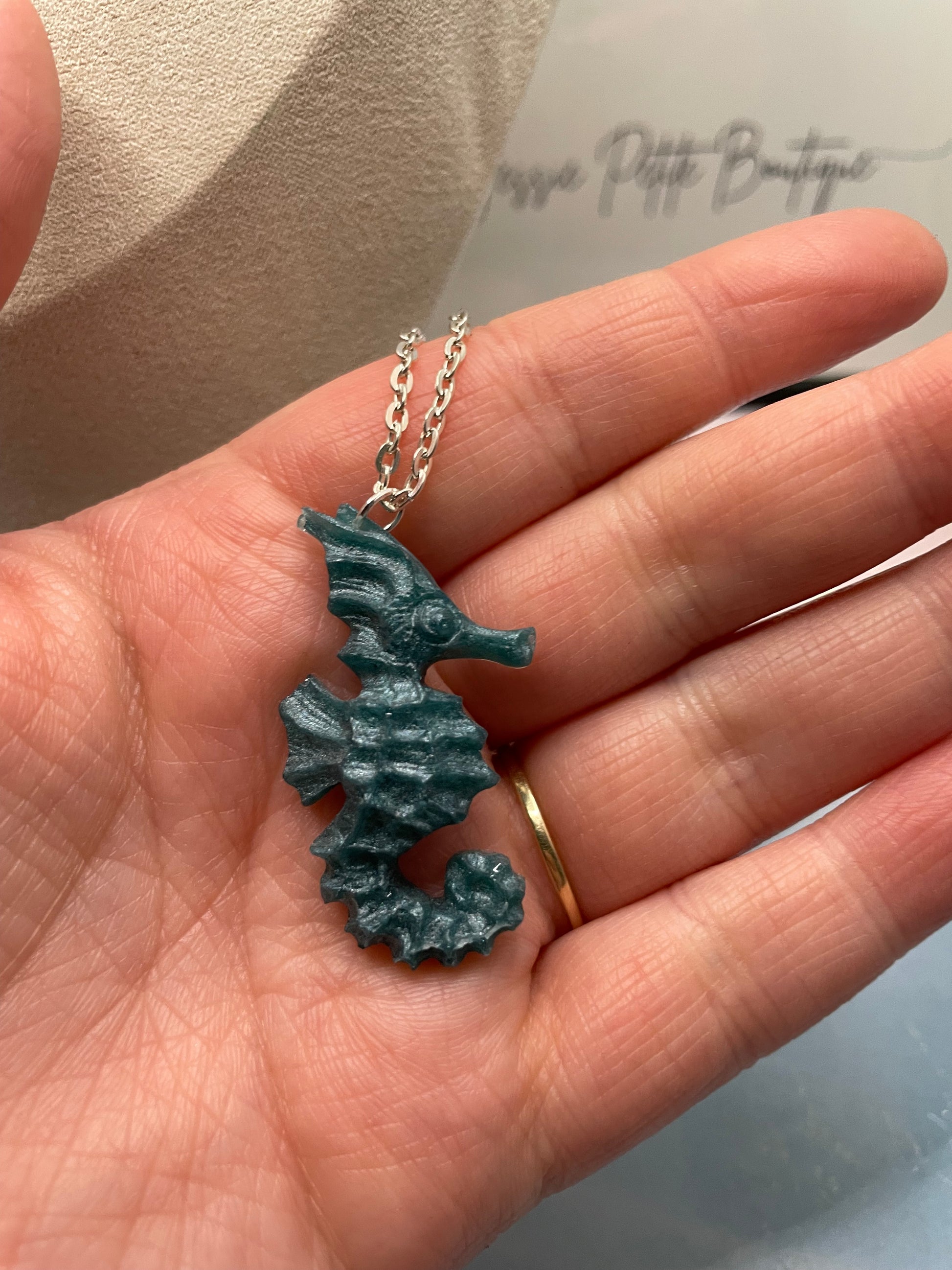 Perfect for lovers of nature-inspired jewelry, the Teal Seahorse Necklace is a charming and stylish addition to your accessory collection. Its playful design makes it perfect for casual wear or as a thoughtful gift for someone special.