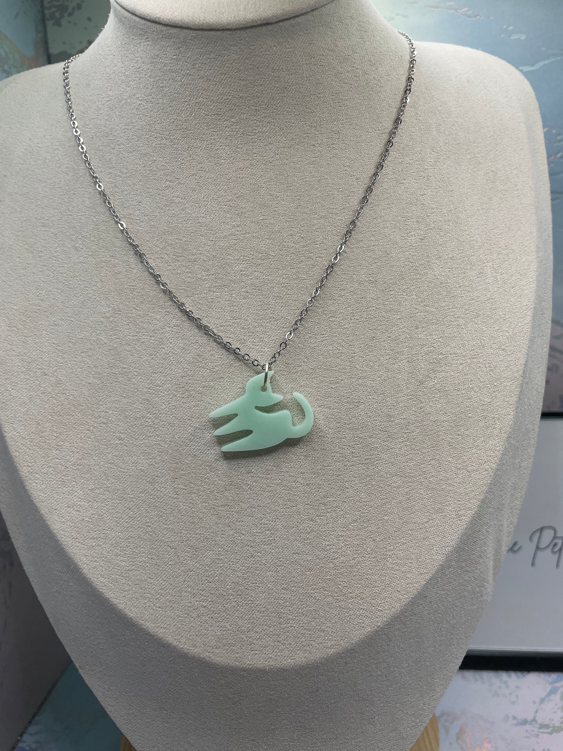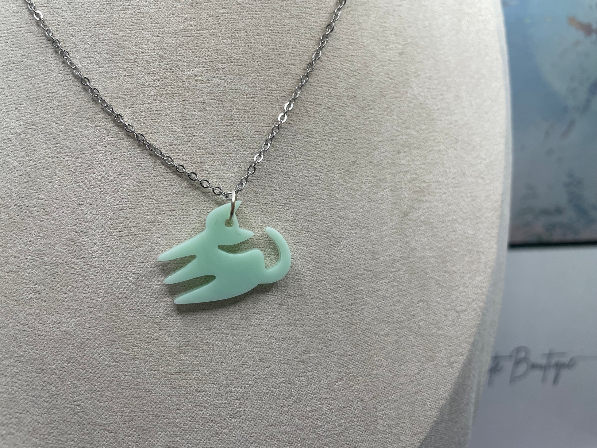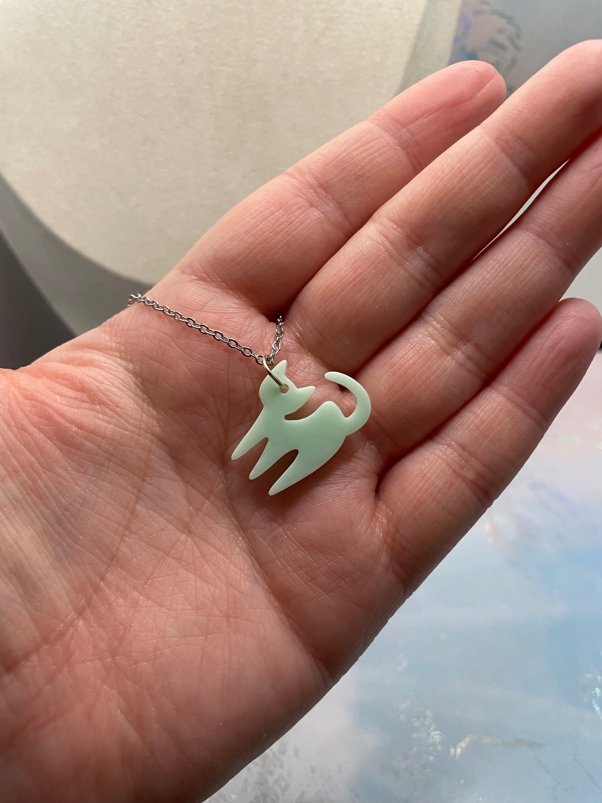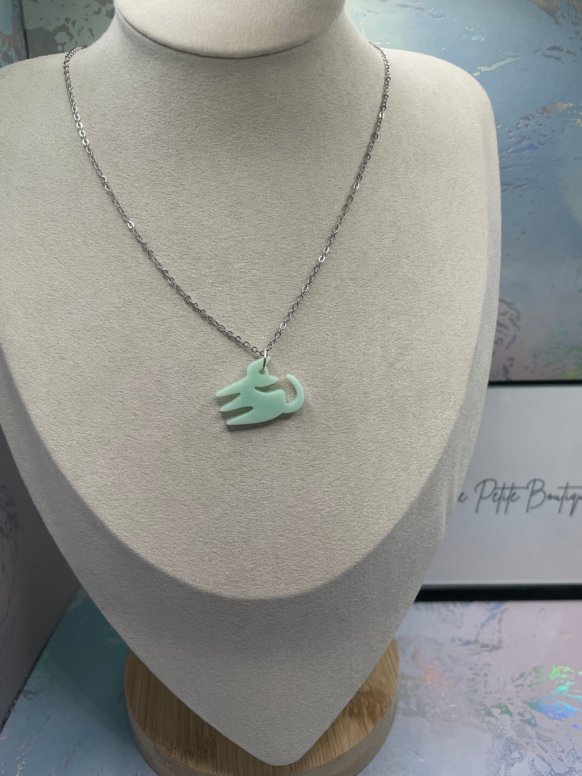Add a playful yet elegant touch to your jewelry collection with this cat-shaped pendant, adorned in a soothing Tiffany green hue. This lightweight and delicate accessory is perfect for cat lovers and anyone who appreciates unique, handcrafted designs.