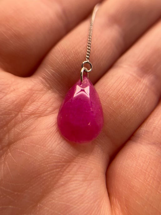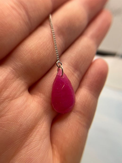 Tiny Pink Teardrop On Silver Chain (NICKEL FREE)