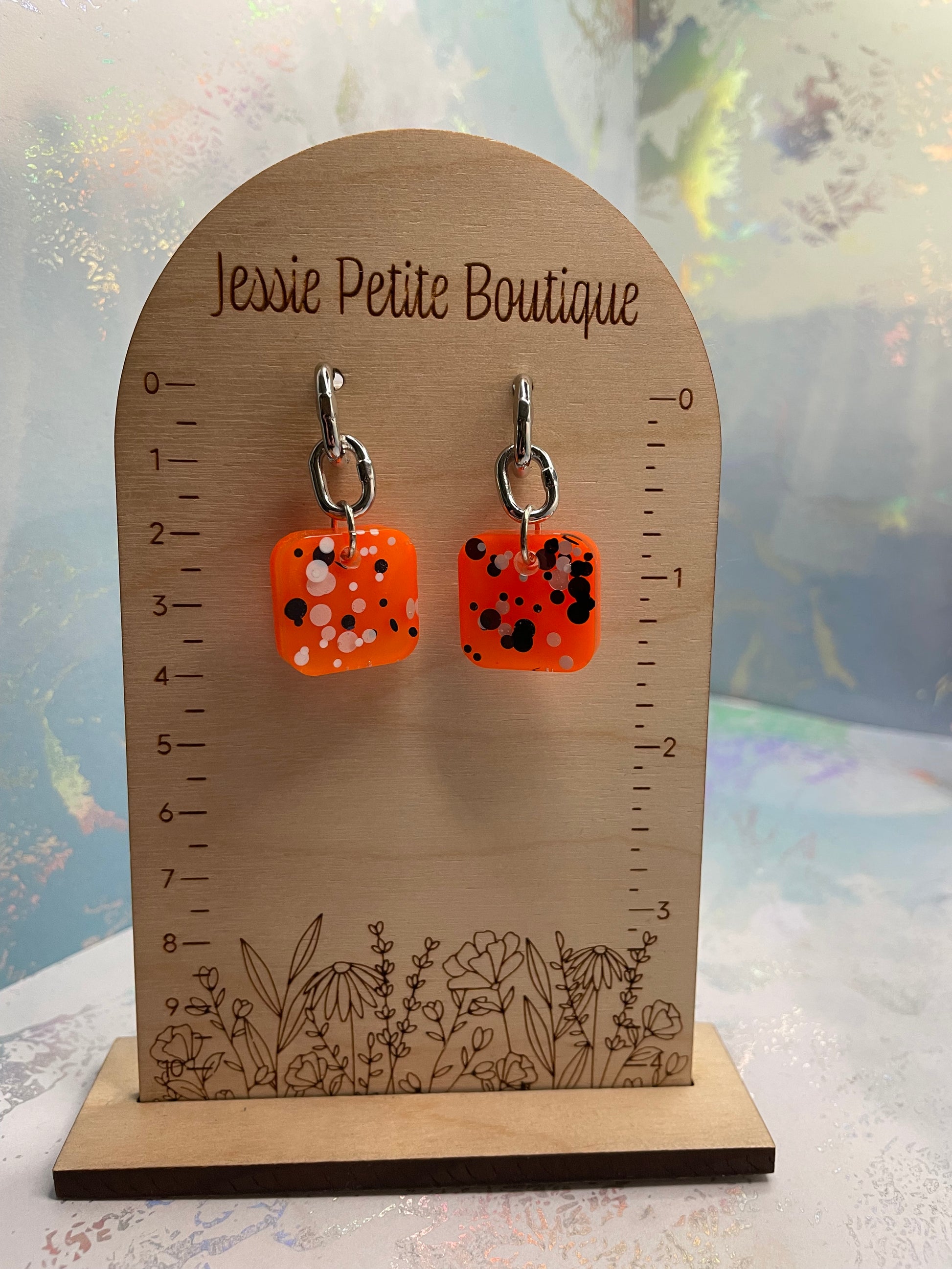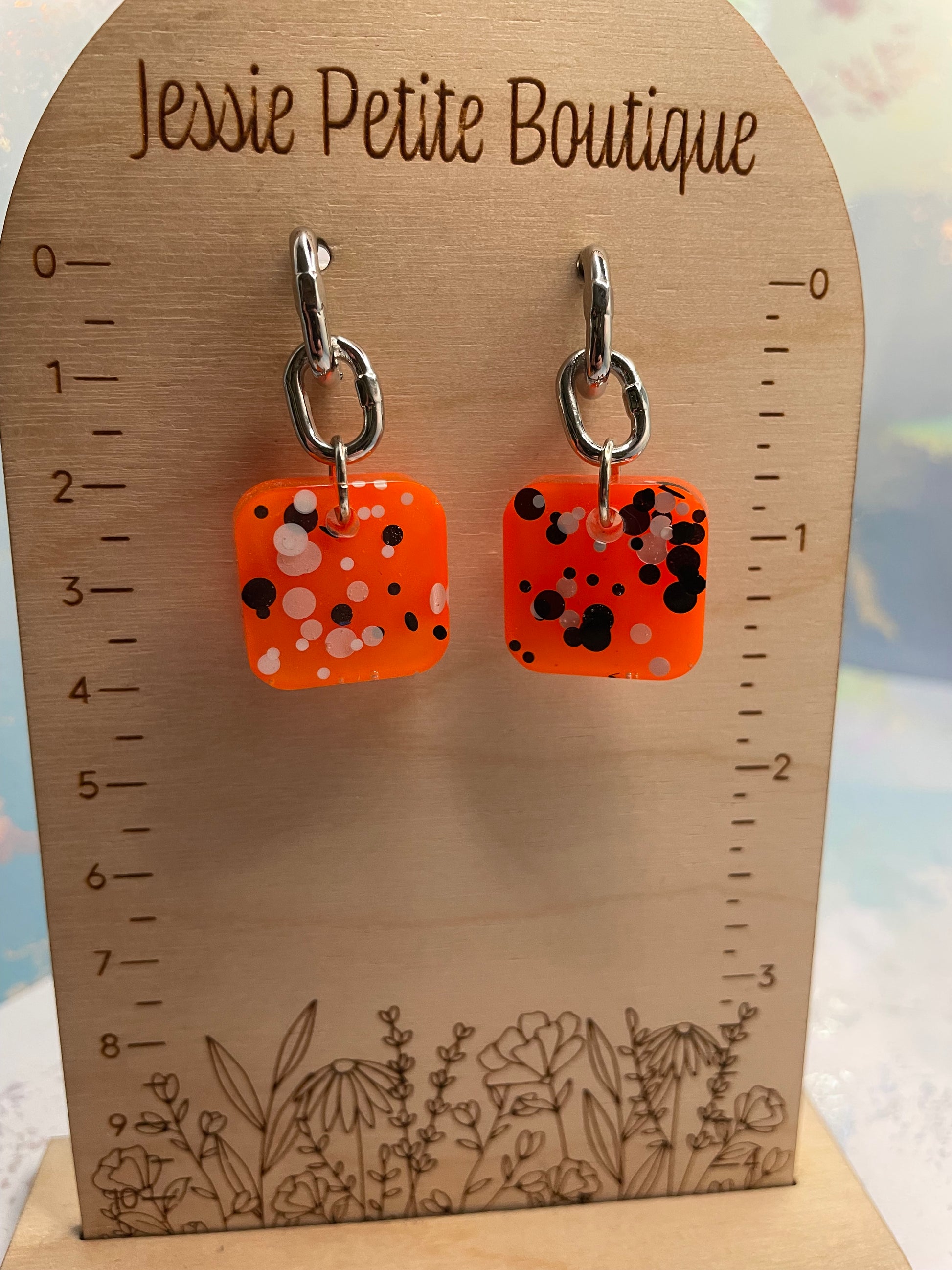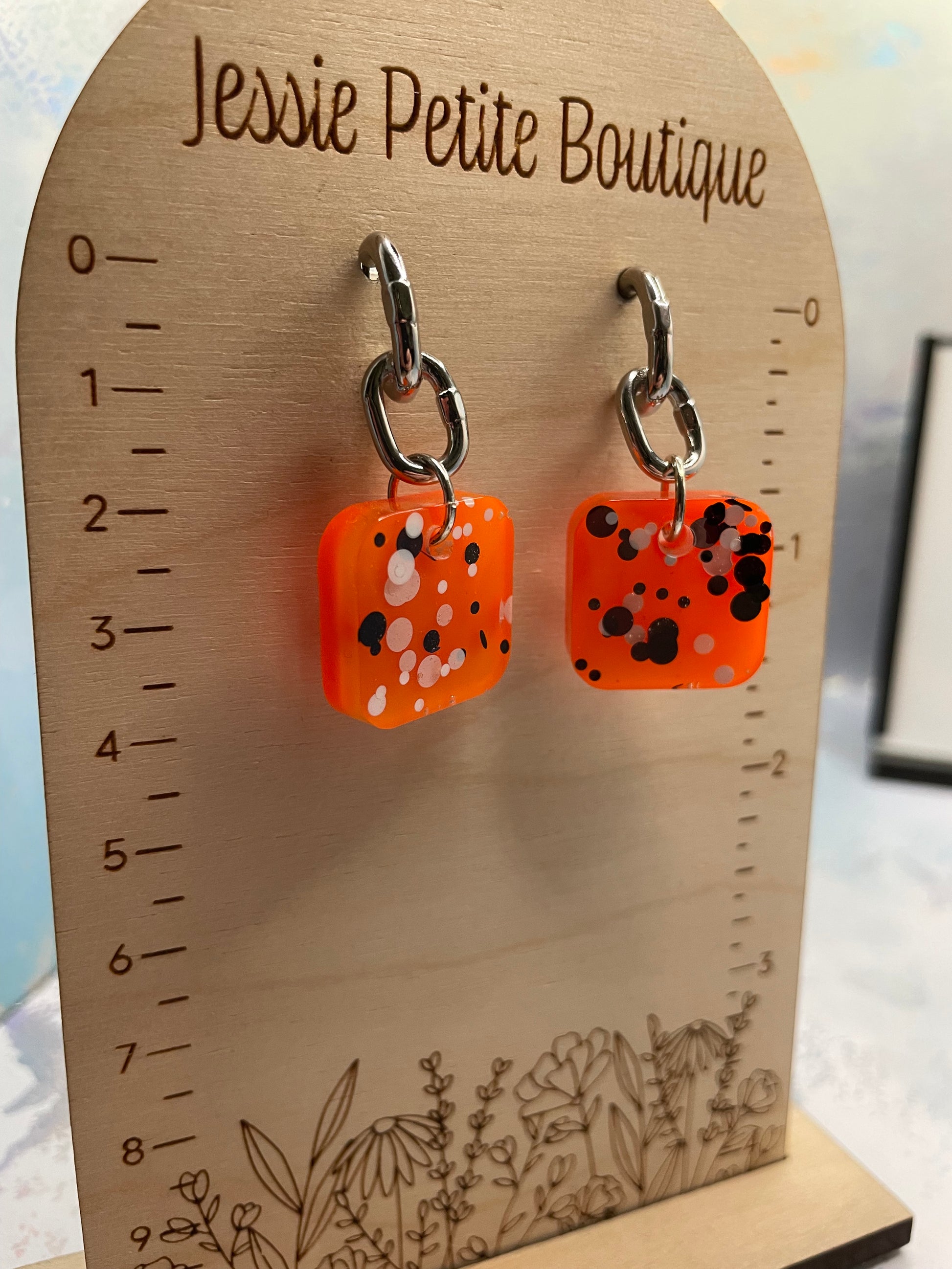 Vibrant Orange Dot Square Earrings- STAINLESS STEEL