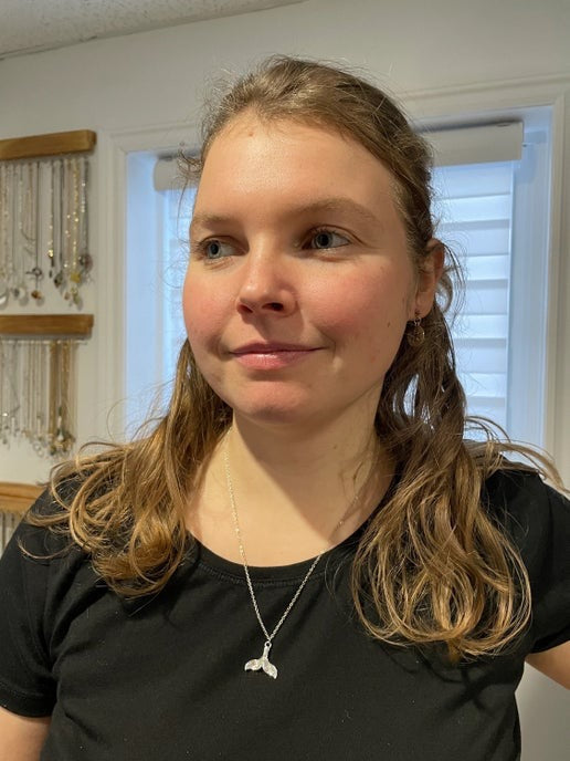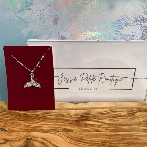 Whale Tail with Rhinestone Necklace – 18’’ Silver Chain (Nickel Free)