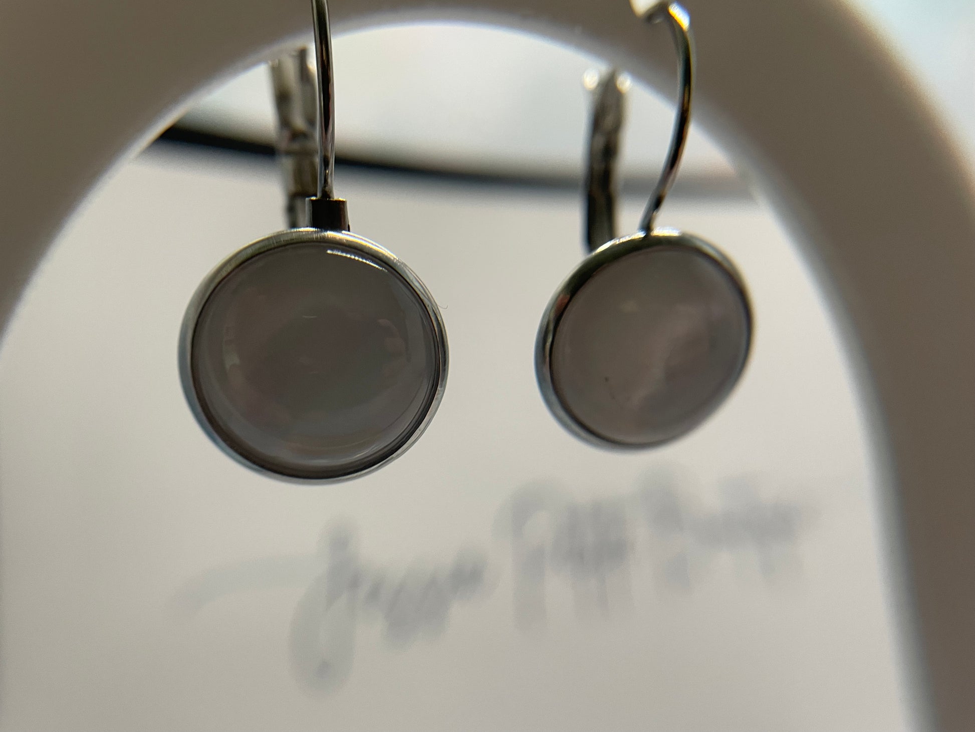 White Cabochon Leverback Earrings-Stainless Steel