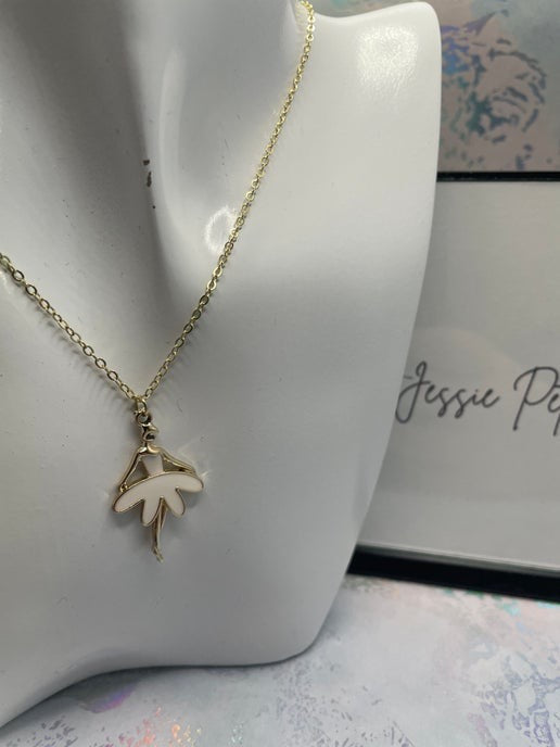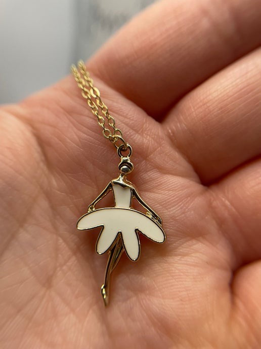 White Dress Ballerina Necklace- 19''gold plated chain-NICKEL FREE