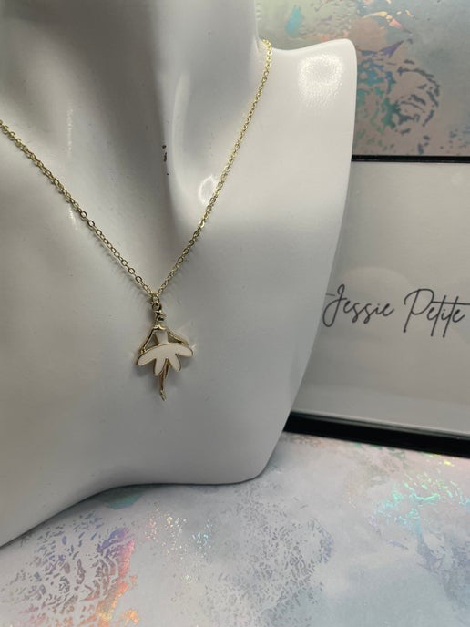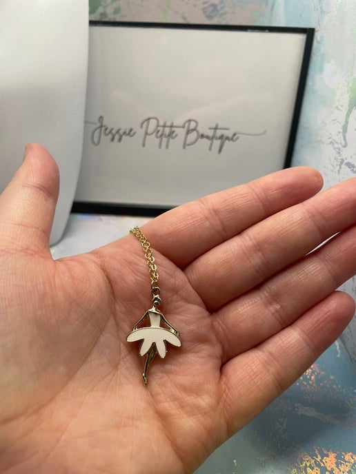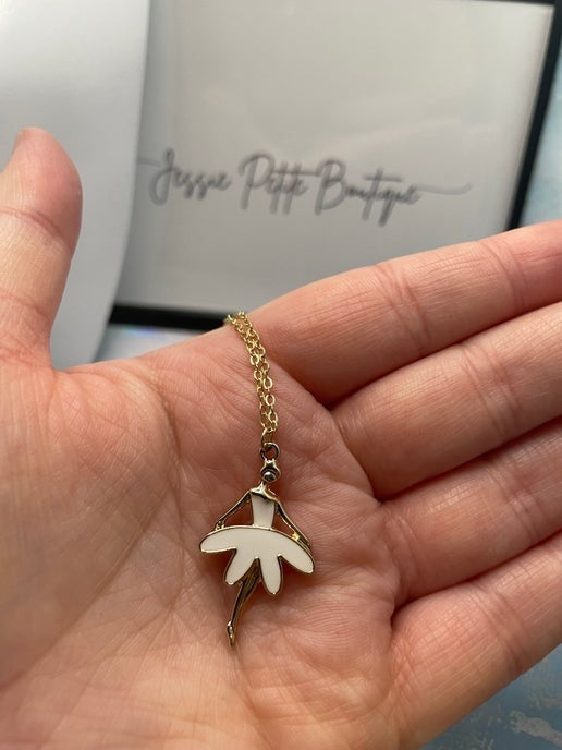 Graceful and elegant, the White Dress Ballerina Necklace is a delicate piece that brings a touch of ballet charm to your look. Featuring a petite ballerina pendant dressed in white enamel with gold accents, this necklace captures the timeless beauty of dance.