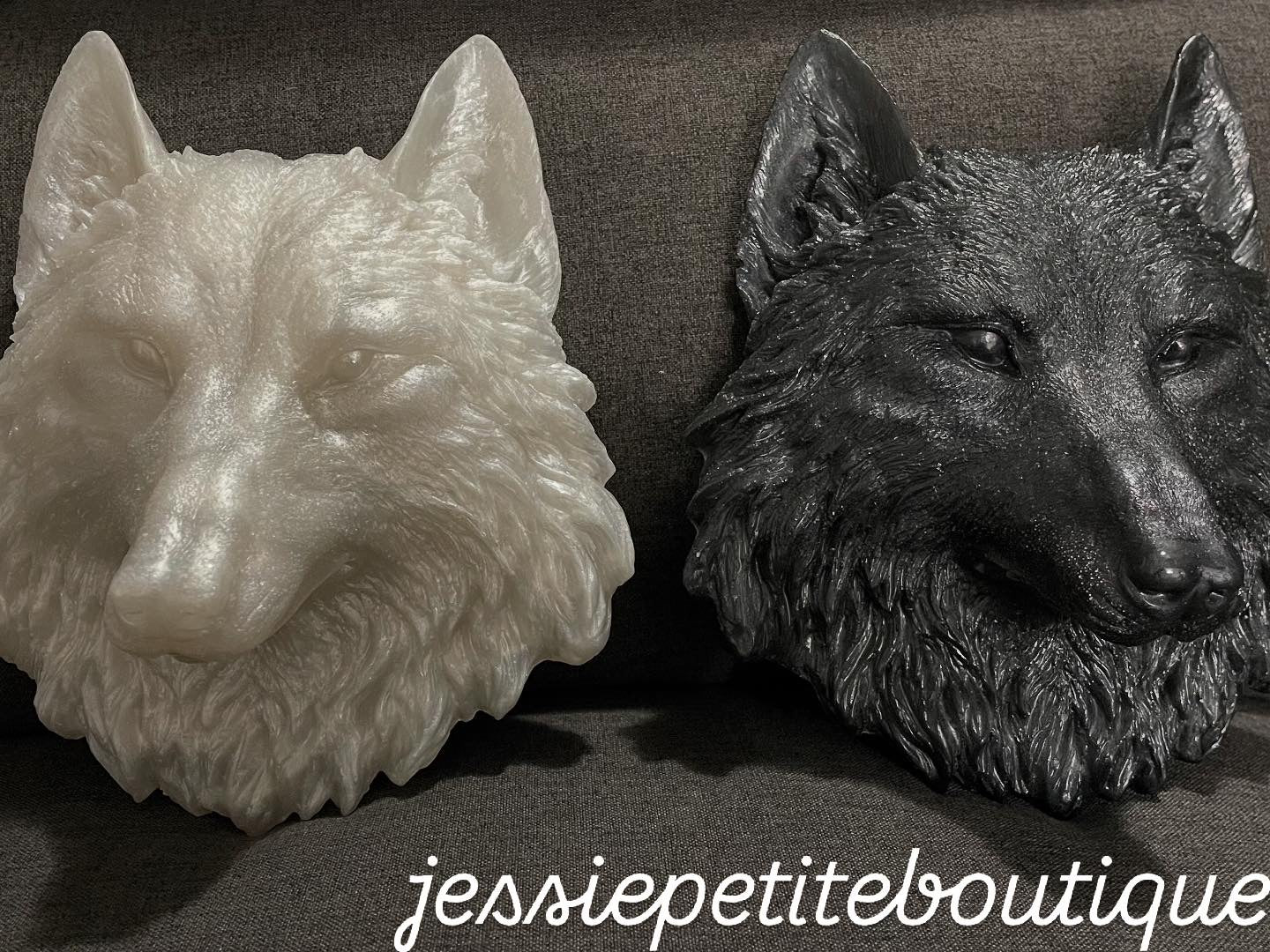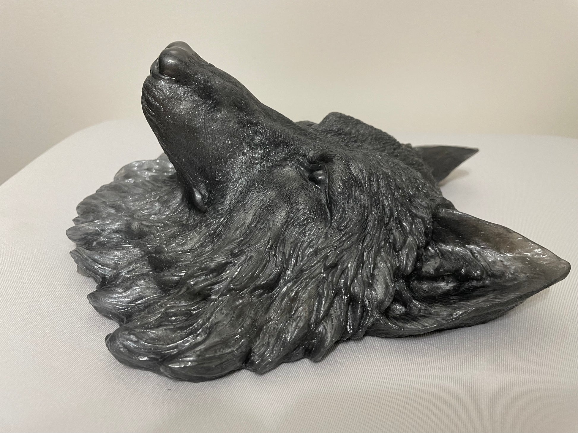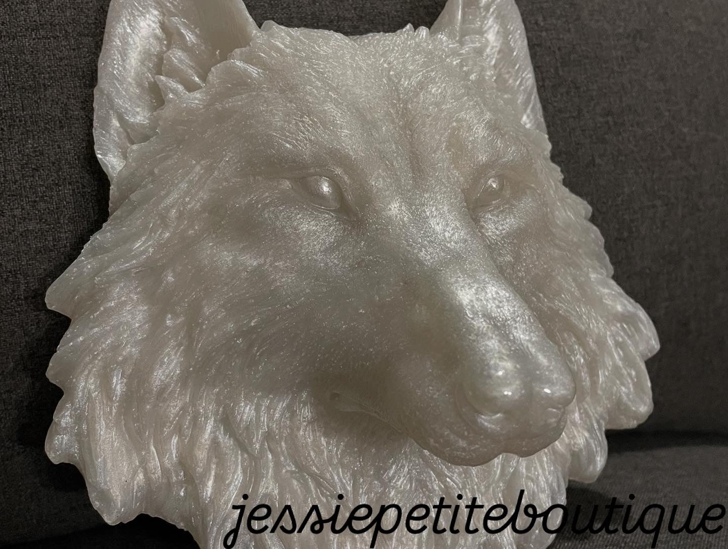 The rich, shimmering effect of the mica powder brings the wolf’s features to life, catching the light and adding depth and texture. Whether you’re decorating a rustic cabin, modern lodge, or woodland-themed space, this unique wall art adds a fierce yet elegant presence to your home.