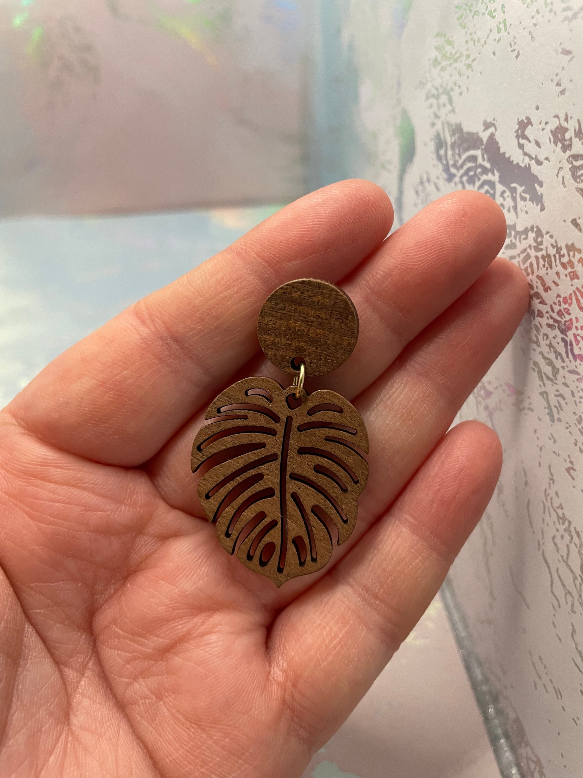 This Monstera jewelry set features a beautifully cut wooden leaf design with an organic, natural feel. The pendant showcases the iconic monstera shape, delicately carved to highlight its flowing lines and textured details, creating a lightweight yet eye-catching piece.