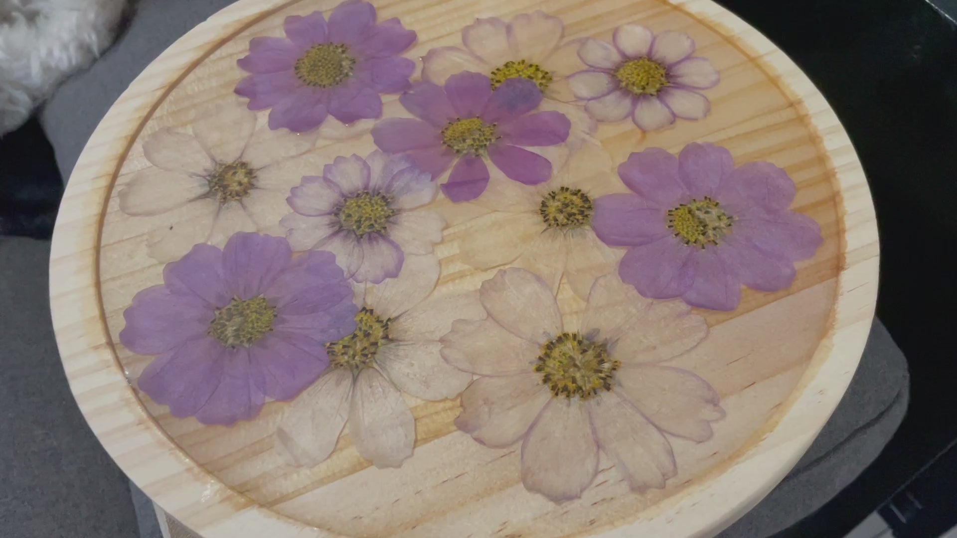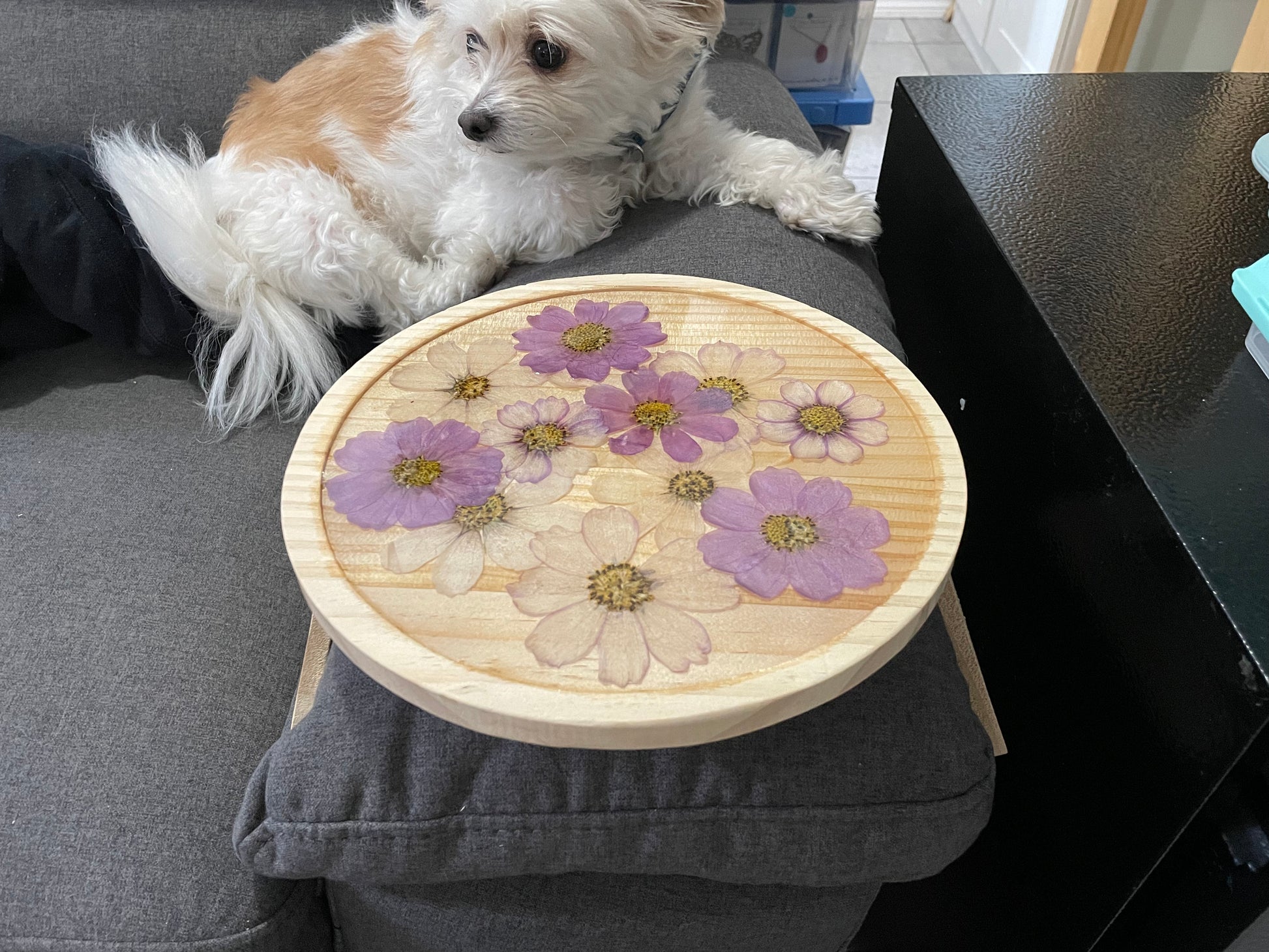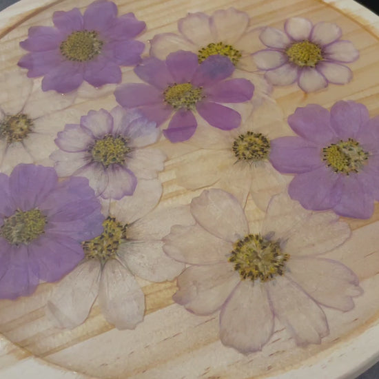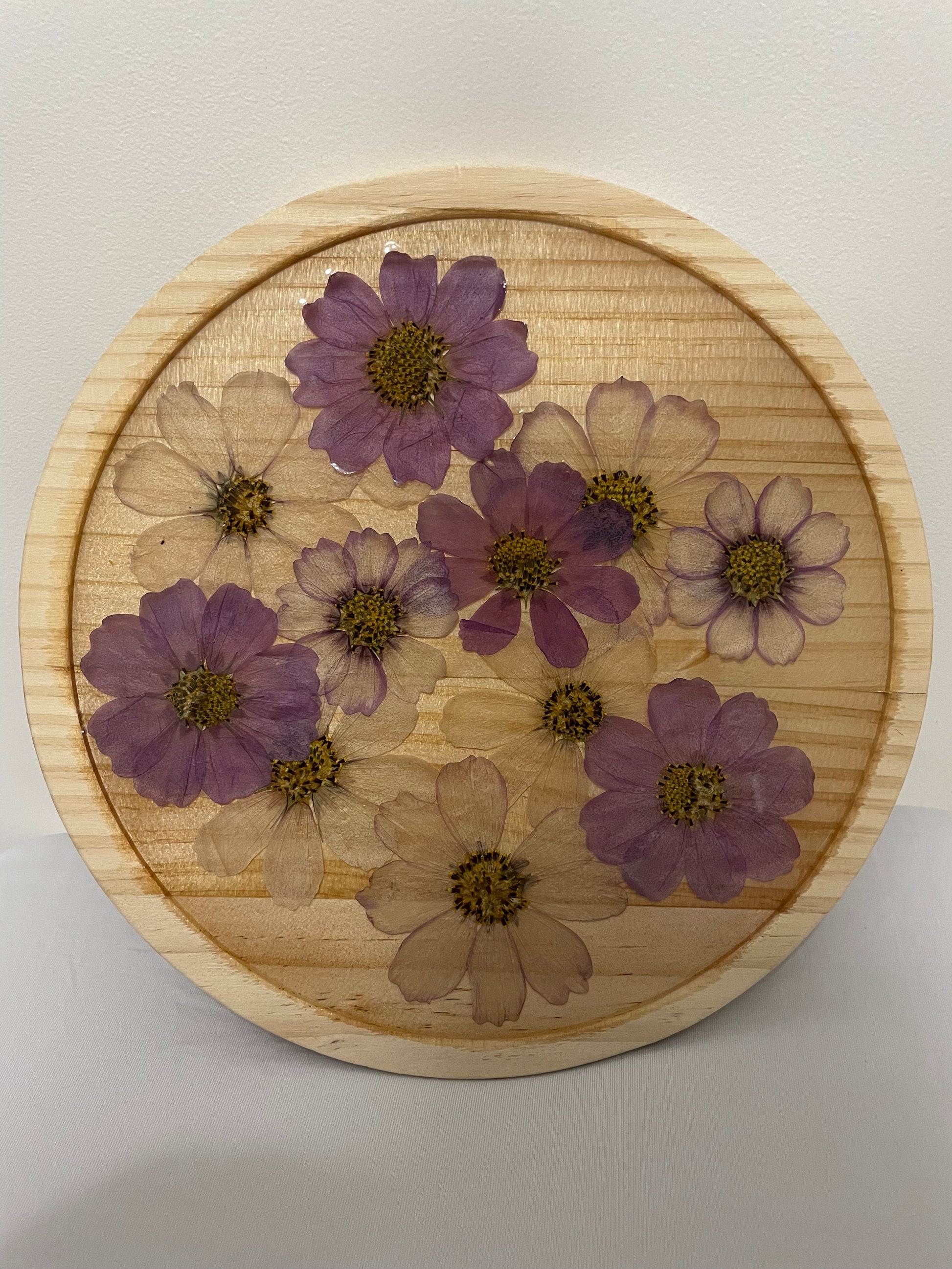Enjoy comfort and style with this handmade wooden sofa tray, featuring a top beautifully decorated with real dried flowers preserved in resin. Designed to sit securely on your couch arm, it’s the perfect accessory for holding your tea while reading a book, or a beer while watching a game.