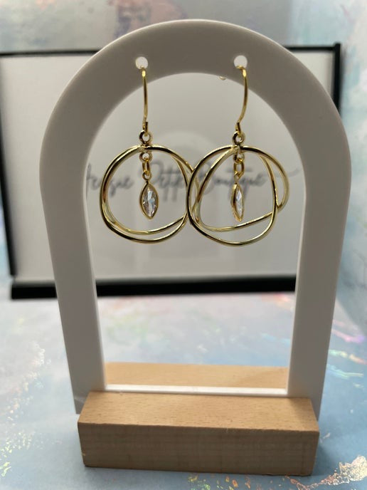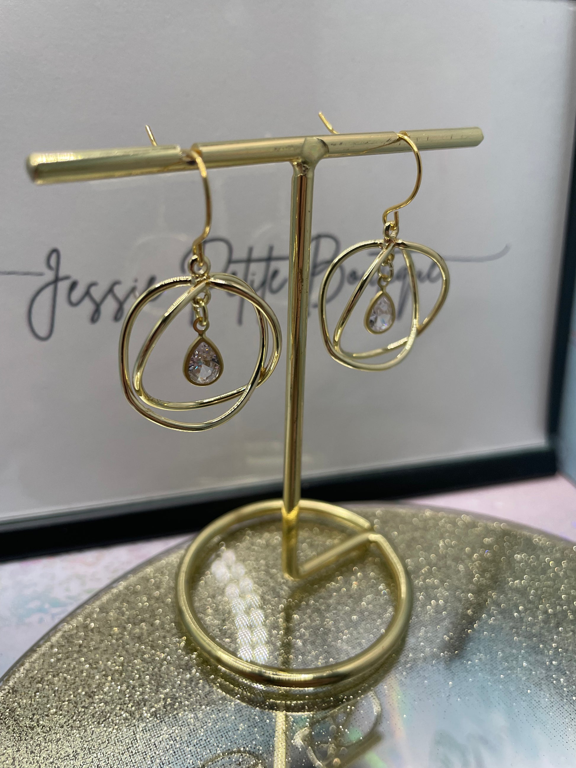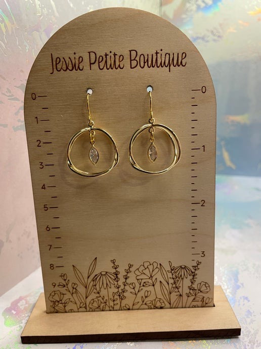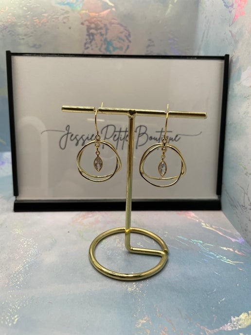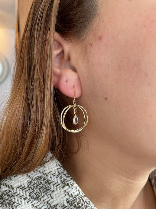 Elegant and versatile, these Yellow Gold Circle Earrings sparkle with a choice of teardrop or pointy oval zirconia stones, adding a radiant accent to any outfit. Crafted with care from brass and alloy, the gold-plated circles feature a refined zirconia center that shines with timeless beauty.