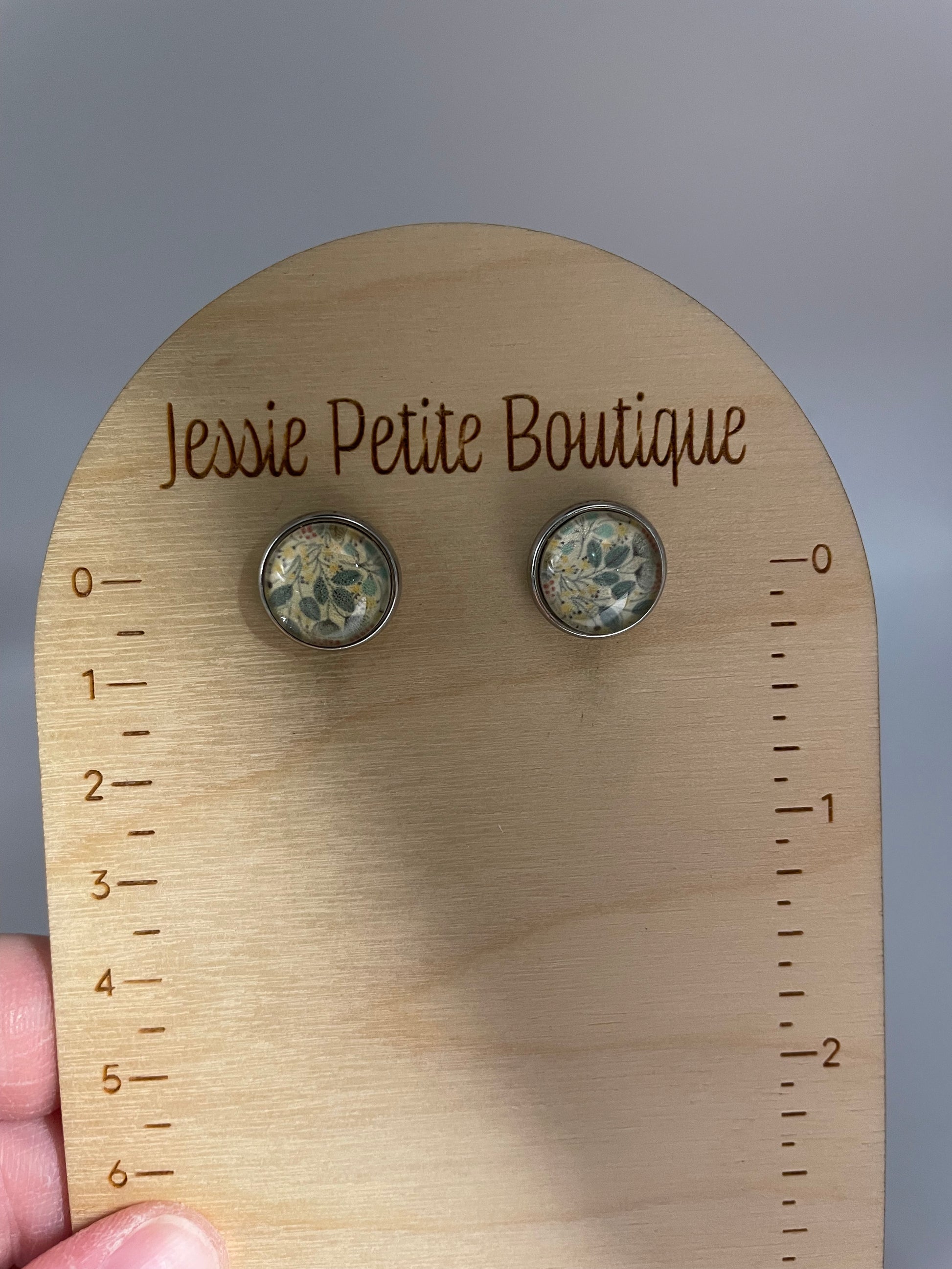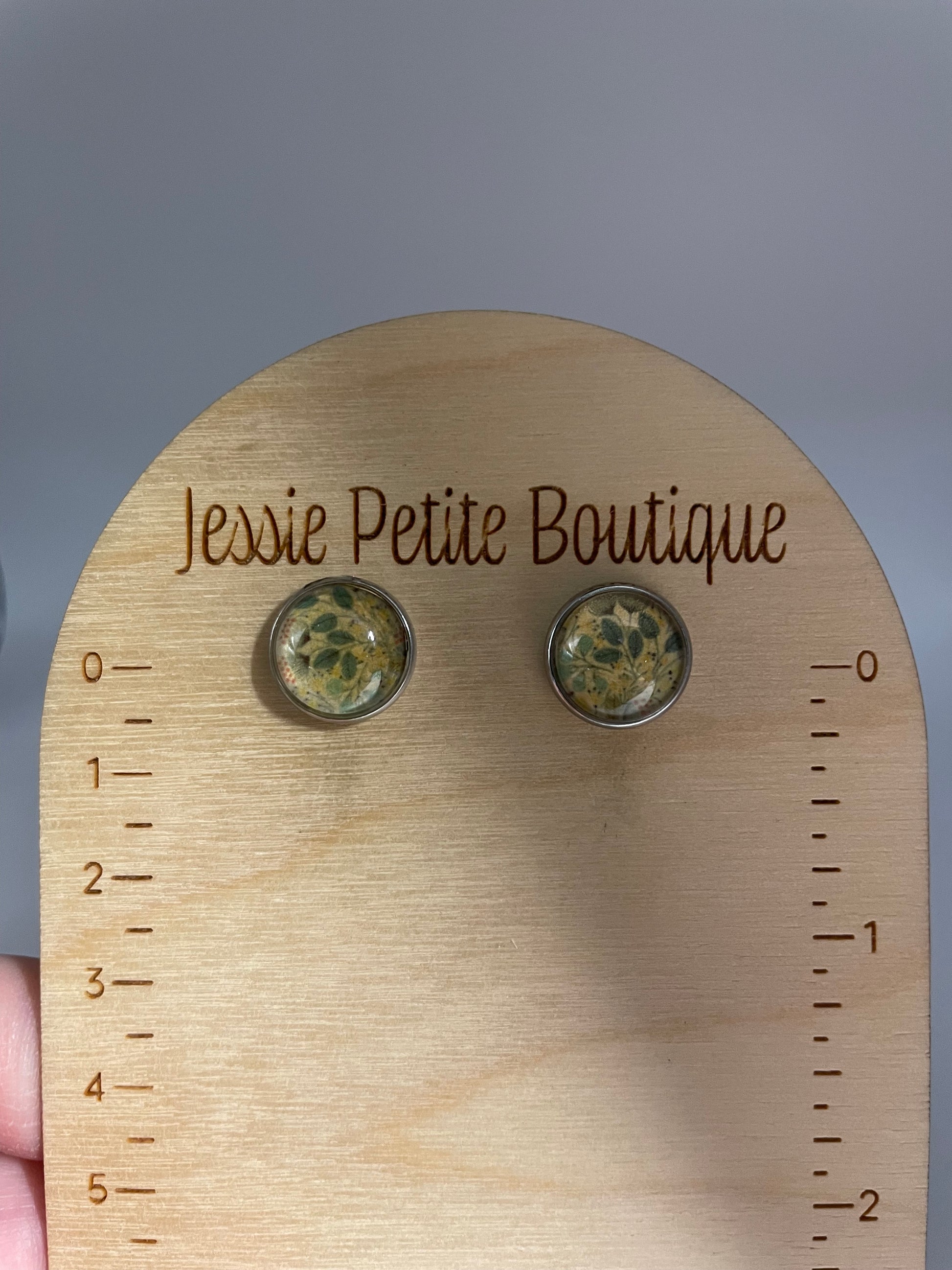 Yellow Leaf Glass Cabochon Stud Earrings – Stainless Steel