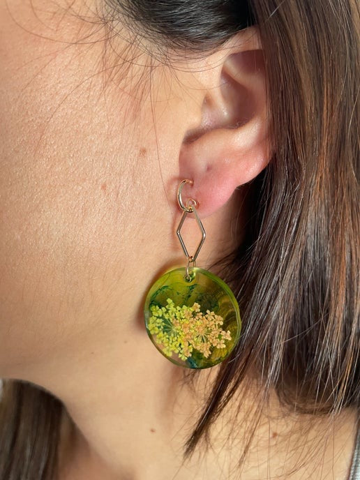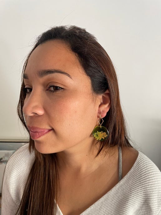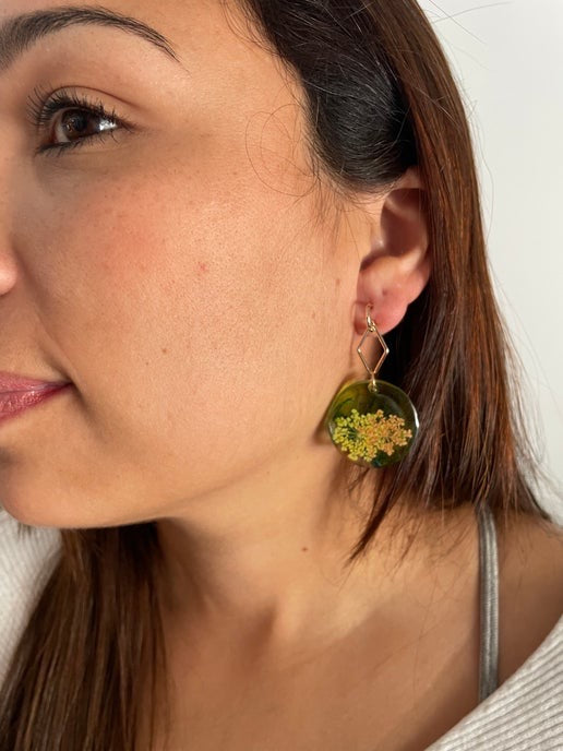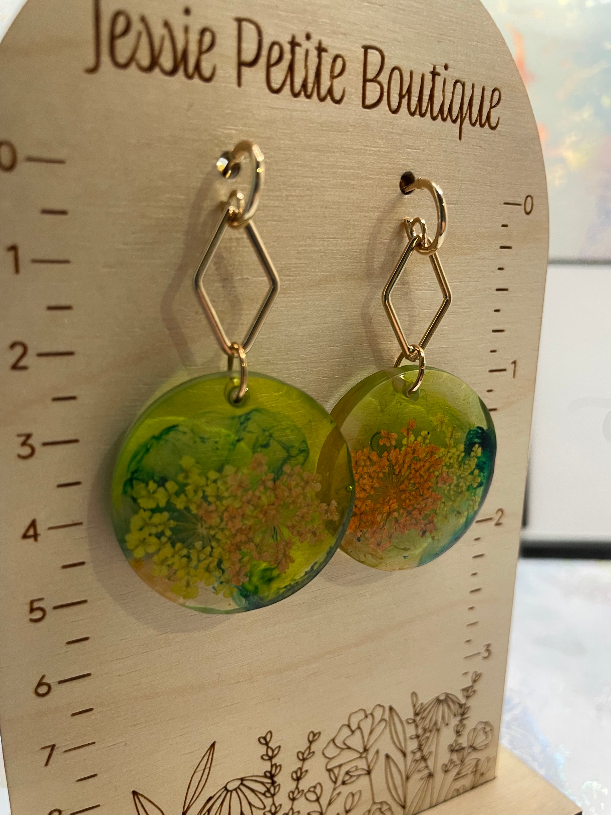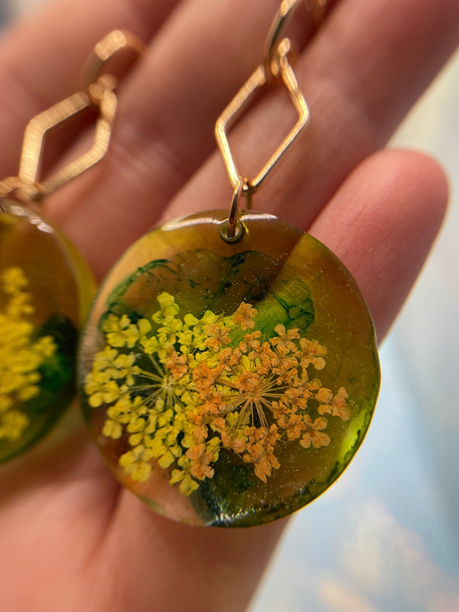 Materials: These earrings are crafted with real dried flowers, alcohol ink, resin, and brass plated in gold. The S925 silver ear stick and nickel-free butterfly closure provide durability and comfort for sensitive ears.