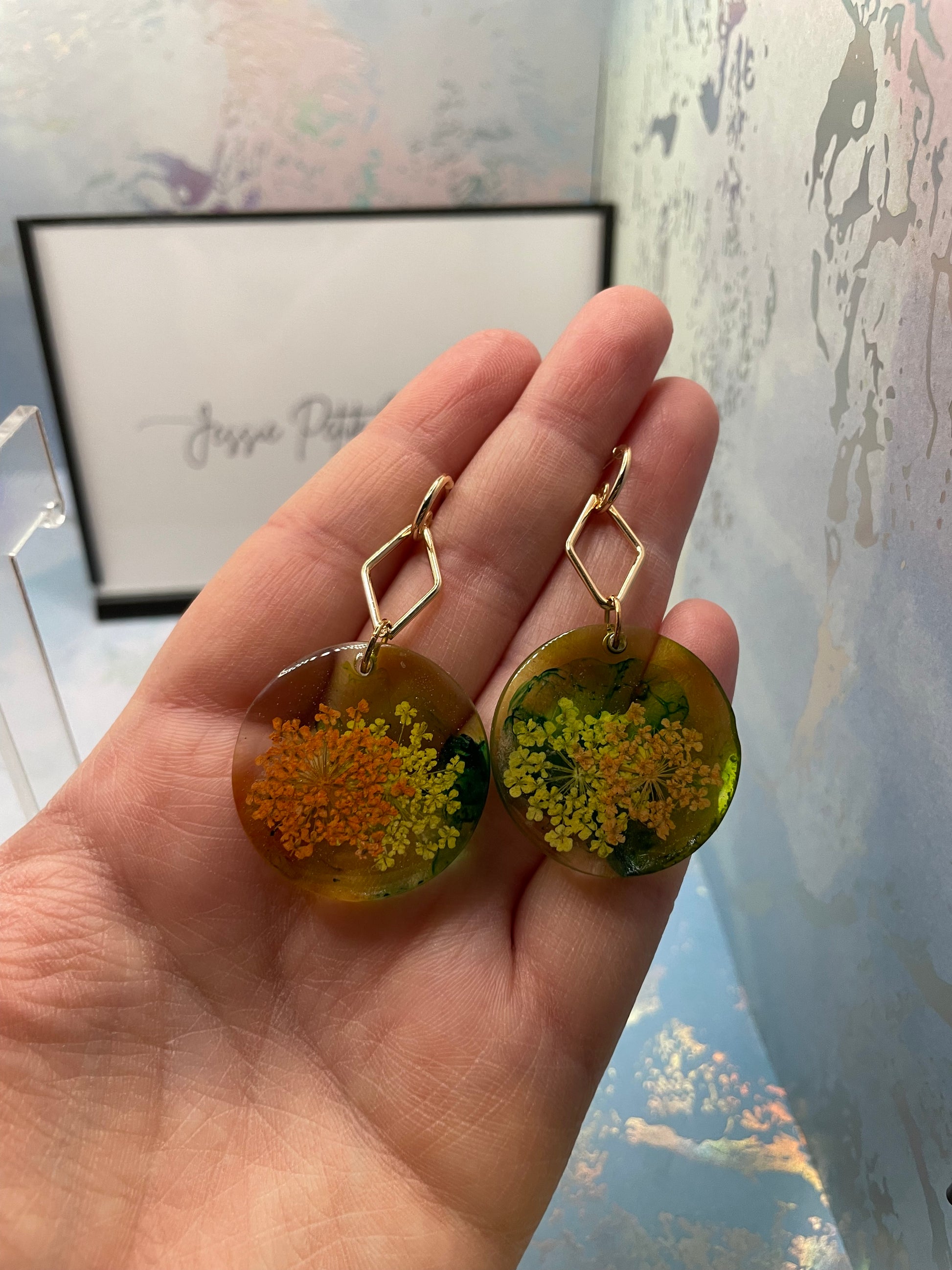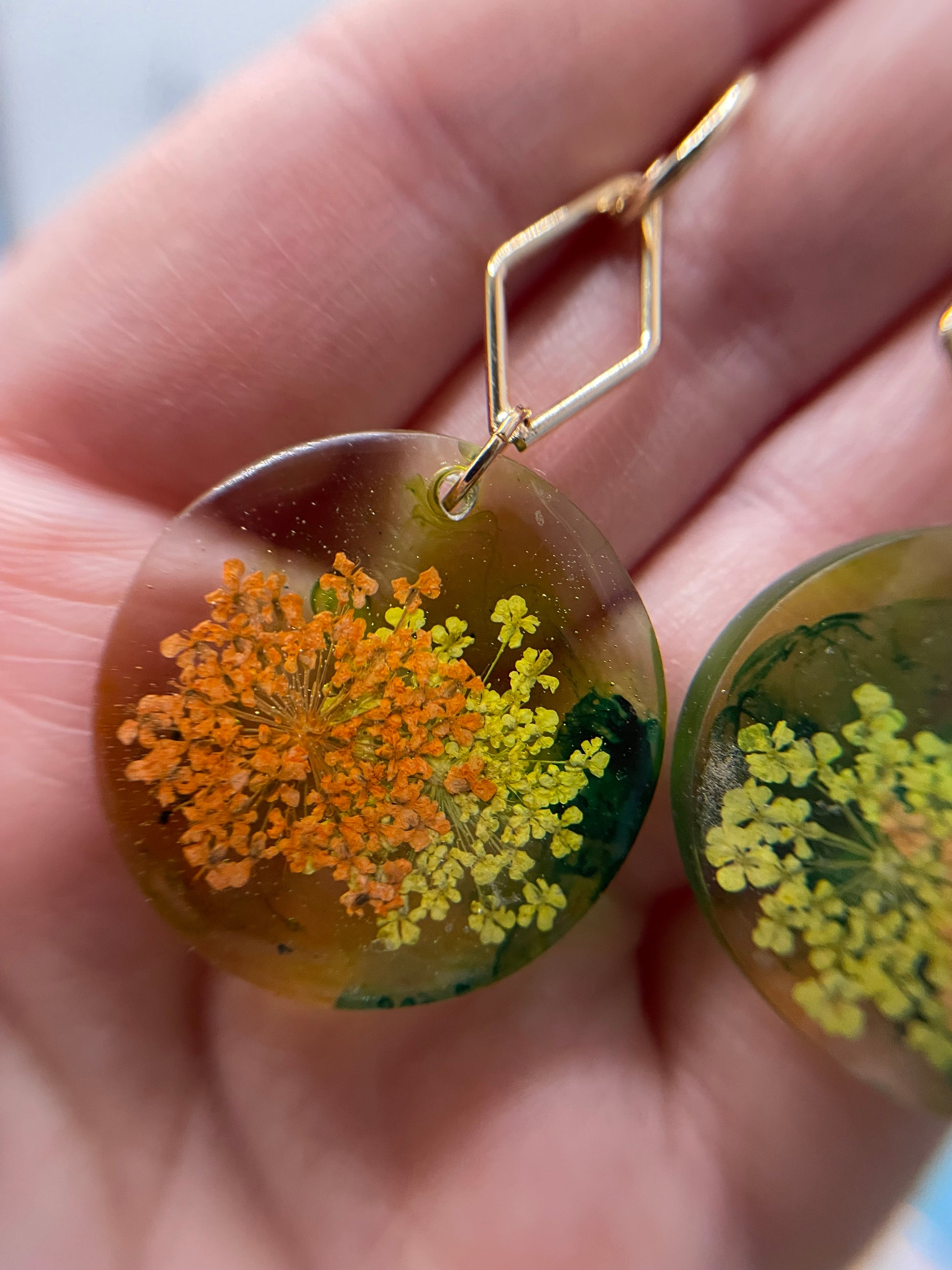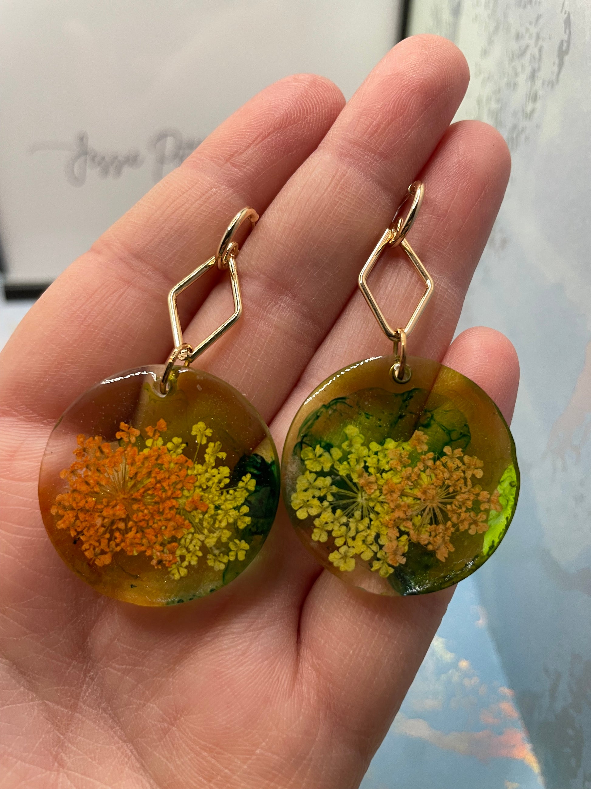 Yellow & Orange Flower Resin Earrings -NICKEL FREE